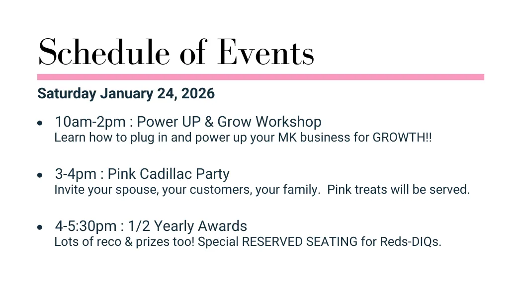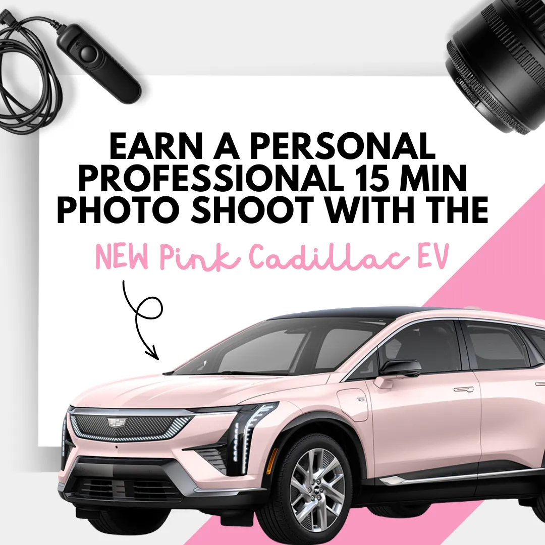 Complete 600 wholesale in December & January (by 1/15) and add one new team member between 12/1–1/15 to earn a personal, professional 15-minute photo shoot with the NEW Pink Cadillac EV